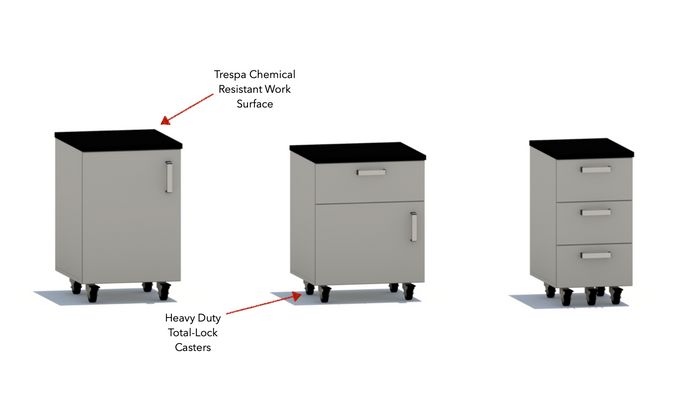 OMNI's mobile storage units provide a convenient place to store equipment and supplies in an organized and secure manner and the ability to easily move each unit around the lab. Lab storage is an important component of laboratory management, ensuring that equipment and supplies are kept in good condition and readily available for use. Proper storage can help prevent contamination, maintain the quality of samples and reagents, and promote lab safety.